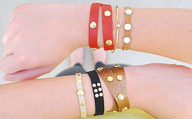Шкіряні варіанти давно вийшли за межі байкерської культури. Це універсальний аксесуар, який однаково доречний і з повсякденним одягом, і з діловим костюмом у форматі smart casual. Приємні на дотик, з часом набуває благородної фактури та стає ще виразнішою. У каталозі представлені моделі з гладкої та плетеної шкіри, з мінімалістичними застібками або декоративними елементами зі сталі. Легко комбінуються з годинником, іншими браслетами або носяться як самостійний акцент. Колірна палітра варіюється від класичного чорного та коричневого до глибоких відтінків синього й бордо.
